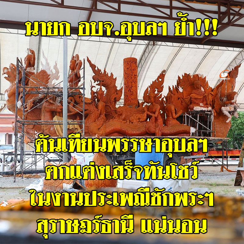 นายกกานต์ ย้ำ!!! ขอให้พี่น้องชาวสุราษฎร์ธานีมั่นใจ ว่าต้นเทียนพรรษา ตกแต่งเสร็จทัน ร่วมขบวนแห่ในงานประเพณีชักพระฯ โดยมีการแสดงช่วงกลางคืน วันที่ 7 ตุลาคม 2568 และร่วมขบวนแห่เรือพนมพระทางบกในเช้าวันที่ 7 ตุลาคม 2568 นี้ แน่นอน ขอเชิญทุกท่านช่วยส่งกำลังใจ ให้ช่างทำเทียนอุบลฯ ของเราด้วยครับ