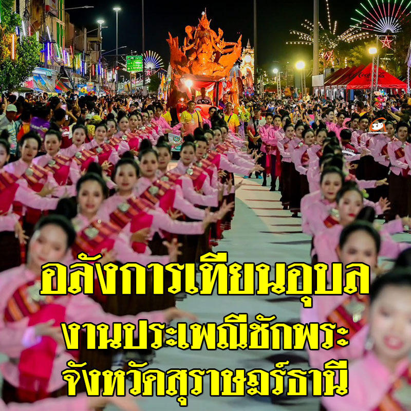 วันที่ 7 ตุลาคม 2568 นายกานต์ กัลป์ตินันท์ นายก อบจ.อุบลราชธานี มอบหมายให้นางกรรณิกา ตันติศิรินทร์ รองนายก อบจ.อุบลราชธานี พร้อมด้วย นายอภิรักษ์ นามบุตร รองนายก อบจ.อุบลราชธานี และหัวหน้าส่วนราชการ เป็นผู้แทนในนามจังหวัดอุบลราชธานี ร่วมขบวนแห่การแสดงแสง สี เสียงประเพณีชักพระ ทอดผ้าป่าและแข่งเรือยาว จังหวัดสุราษฎร์ธานี ประจำปี 2568 ได้นำขบวนนางรำจากโรงเรียนพิบูลมังสาหาร (สังกัด อบจ.อุบลราชธานี) และต้นเทียนพรรษาประเภทแกะสลักขนาดกลาง (จากวัดศรีแสงทอง) ที่ได้รับรางวัลชนะเลิศ เข้าร่วมโชว์ในงาน