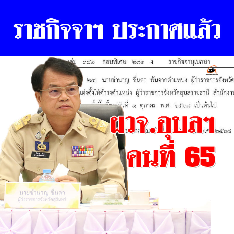 - 1 ตุลาคม 2568 ผู้ว่าราชการจังหวัดอุบลราชธานี