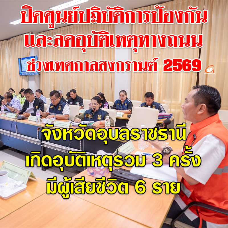 ที่ประชุมได้ติดตามรายงานผลการดำเนินงานในช่วงรณรงค์ควบคุมเข้มข้น 7 วัน ในห้วงเทศกาลสงกรานต์ (วันที่ 10–16 เมษายน 2569) พบว่าในพื้นที่จังหวัดอุบลราชธานีเกิดอุบัติเหตุรวม 3 ครั้ง มีผู้เสียชีวิต 6 ราย
