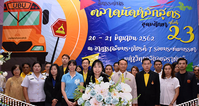 วันที่ 20 มิถุนายน 2562 มหาวิทยาลัยอุบลราชธานี ร่วมกับ สำนักงานคณะกรรมการอุดมศึกษา และสถาบันการศึกษาภาครัฐและเอกชนทั่วประเทศ จัดงาน “นิทรรศการตลาดนัดหลักสูตรอุดมศึกษา ครั้งที่ 23” ระหว่างวันที่ 20 – 21 มิถุนายน 2562 ณ อาคารเฉลิมพระเกียรติ ๗ รอบพระชนมพรรษา มหาวิทยาลัยอุบลราชธานี โดยมี ผู้ช่วยศาสตราจารย์ ดร.ชุตินันท์ ประสิทธิ์ภูริปรีชา อธิการบดีมหาวิทยาลัยอุบลราชธานี เป็นประธานพิธีเปิดและกล่าวต้อนรับผู้เข้าร่วมงาน