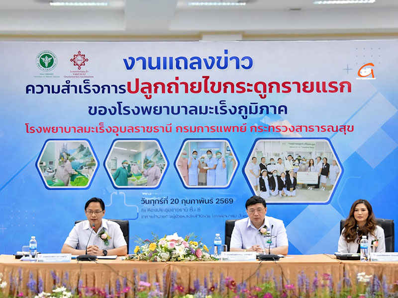 วันที่ 20 กุมภาพันธ์ 2569 โรงพยาบาล มะเร็ง อุบลราชธานี อำเภอเมือง จังหวัดอุบลราชธานี ได้มีการจัดงานแถลงข่าว ความสำเร็จการปลูกไขกระดูกรายแรกของโรงพยาบาลมะเร็งในภูมิภาค ขึ้น โดยมี นายแพทย์ สกานต์ บุนนาค รองอธิบดีกรมการแพทย์ ร่วมด้วย นายแพทย์ สิทธิชัย อาชายินดี ผู้อำนวยการโรงพยาบาลมะเร็งอุบลราชธานี ,แพทย์หญิง ปวีณรัตน์ ลิมปวิทยากุล หัวหน้ากลุ่มงานอายุรศาสตร์ (แพทย์เจ้าของไข้) และ นายแพทย์ ณรงค์ชัย ผู้เจริญวิบูลย์ อายุรแพทย์เฉพาะทางสาขาโลหิตวิทยา ร่วมแถลงข่าว โดยมี รองนายแพทย์สาธารณสุข ,ผู้บริหารโรงพยาบาลมะเร็งอุบลราชธานี ,แพทย์ ,พยาบาล,เจ้าหน้าที่ บุคลากร ภาคส่วนที่เกี่ยวข้อง ภาคีเครือข่ายด้านสาธารณสุข เขตสุขภาพที่ 10 ร่วมรับฟัง