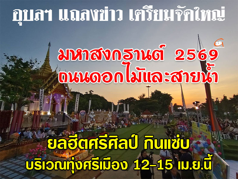 วันที่ 31 มีนาคม 2569 สำนักงานวัฒนธรรมจังหวัดอุบลราชธานี ร่วมกับเทศบาลนครอุบลราชธานี การท่องเที่ยวแห่งประเทศไทย (ททท.) สำนักงานอุบลราชธานี สำนักงานจังหวัดอุบลราชธานี และภาคีเครือข่ายทั้งภาครัฐและเอกชน เตรียมจัดงานประเพณีสงกรานต์ ประจำปี พ.ศ. 2569 ภายใต้ชื่องาน “ถนนดอกไม้และสายน้ำ มหาสงกรานต์นครอุบล ยลฮีตศรีศิลป์ กินแซ่บ” ระหว่างวันที่ 12–15 เมษายน 2569 ณ บริเวณทุ่งศรีเมือง ใจกลางเมืองอุบลราชธานี